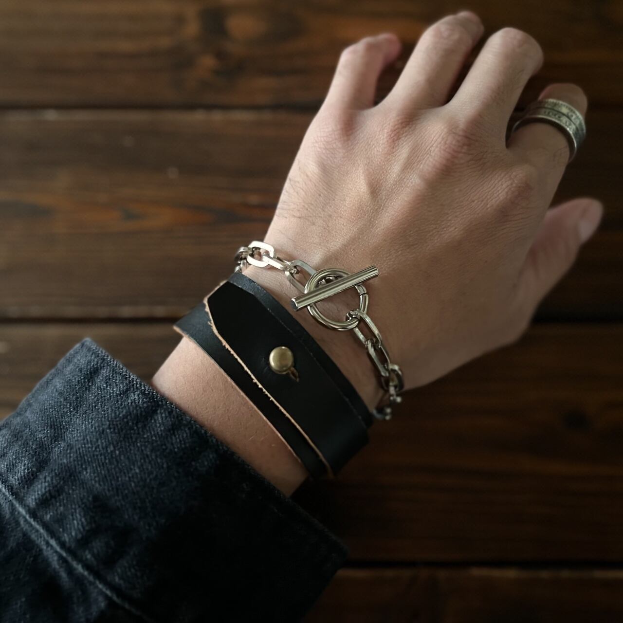 【角小判ブレスレット Tバー 0.7cm幅】